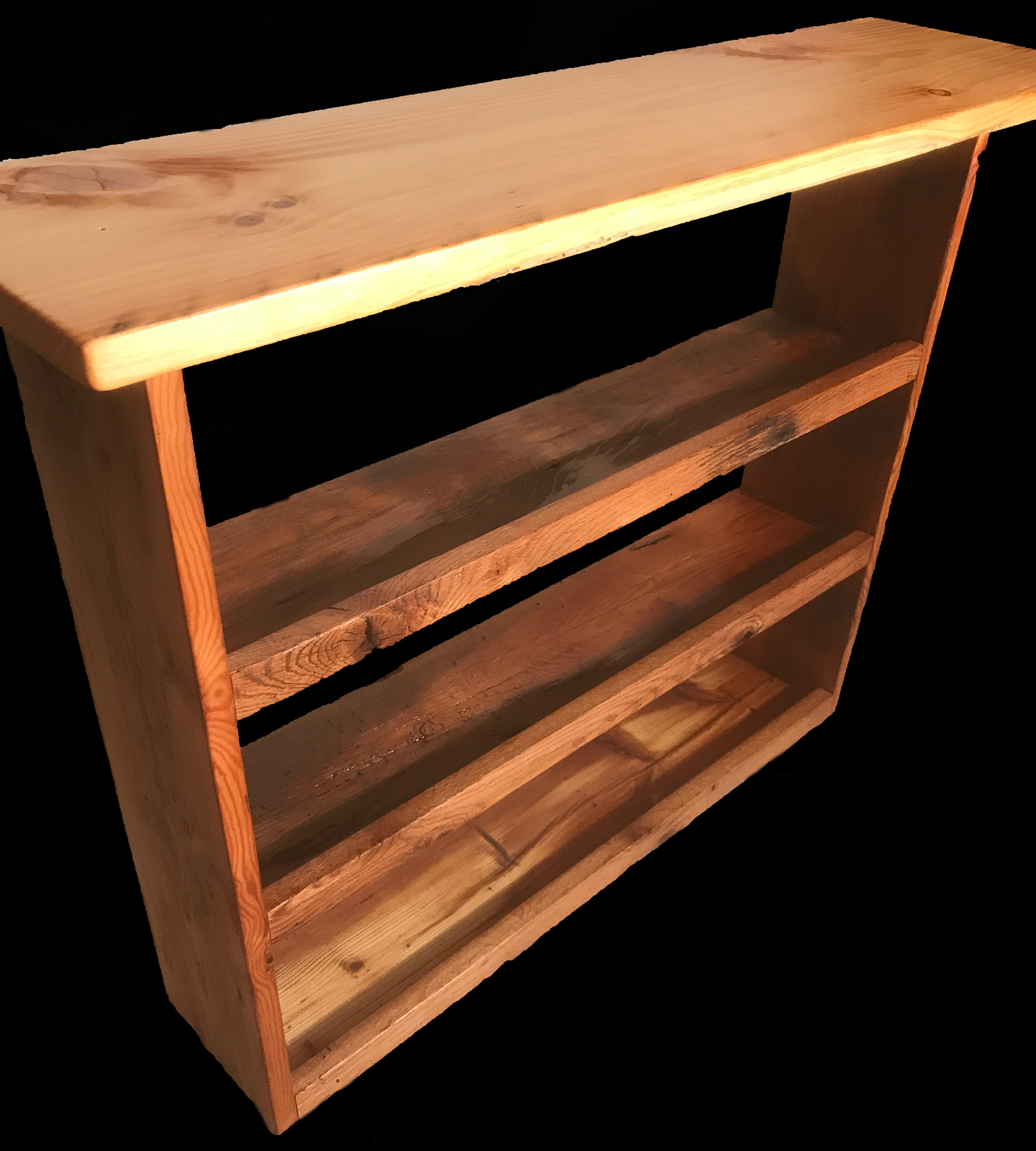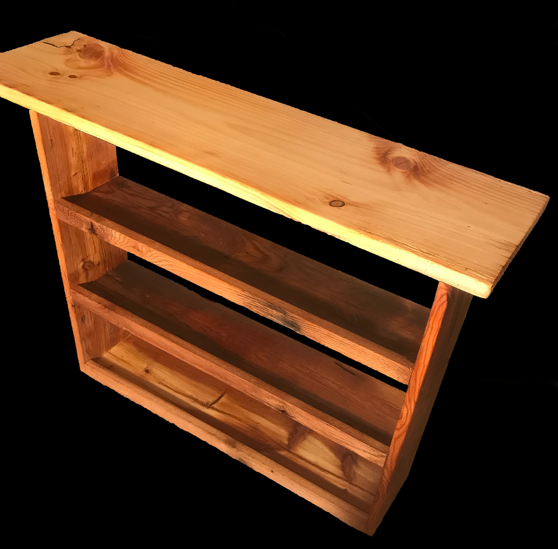 100% recalaimed barn wood. Dininsioned to accomodate books and DVD cases.